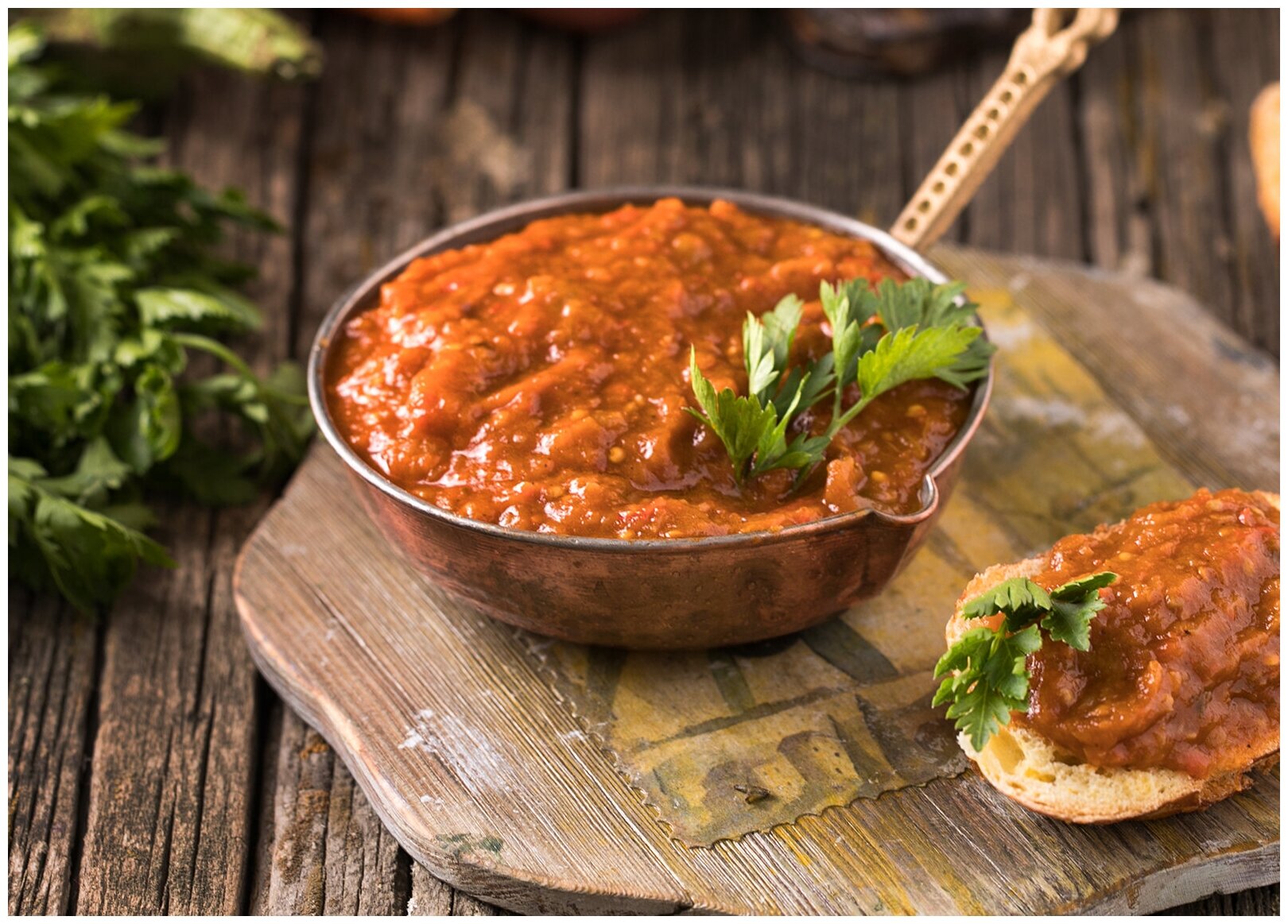 После этого добавлялись специи, зелень, соль и сахар. Полученная масса фасовалась по банкам, укупоривалась и подвергалась стерилизации. Такой процесс производился на каждом крупном консервном заводе в Краснодарском крае, Поволжье, на Украине и в Закавказье. У каждого завода были свои секреты, но основу составляют вышеперечислённые ингредиенты и технологии.