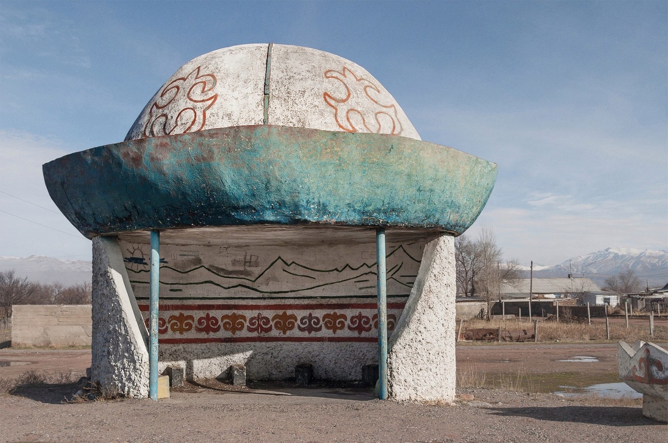 Путешествие Кристофера ХервигаХервиг объездил 14 стран, включая Россию, Казахстан, Грузию и Литву. В каждом из этих мест он отыскивал автобусные остановки, которые уже давно стали частью местного пейзажа. Его фотографии показывают, как даже в самых удаленных уголках Союза проявлялся художественный подход к дизайну.