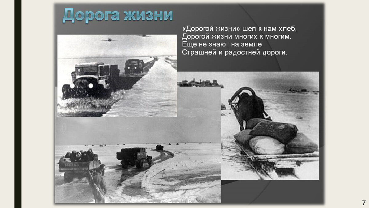 Каждую зиму, когда лед становился достаточно крепким, по нему проходила «дорога жизни». Это было опасное предприятие: количество жертв на дороге, где шли боевые действия, было огромным. Но каждый раз ленинградцы вновь и вновь выходили на это ледяное поле, понимая, что на кону — жизни их близких и собственная надежда.